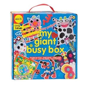 Alex My Giant Busy Box is 6 great projects in one giant box of fun. Make dough animals, collage a farm and sticker art. Create paper bag puppets and tissue art pictures. This includes two plastic frames, four animal punch outs, and ten colors of dough, two peel and stick tissue art pictures, tons of tissue paper, glue, and easy instructions. It comes in a reusable box with a woven handle. DISCOVERY EXCLUSIVE! The Discovery Giant Activity Box offers sixteen great projects all in one giant activity box of fun. Clay animals, collage materials, sticker art, tissue art and paper bag puppets name just a few. The Discovery Giant Activity Box arrives with all the supplies you need, plus easy instructions.