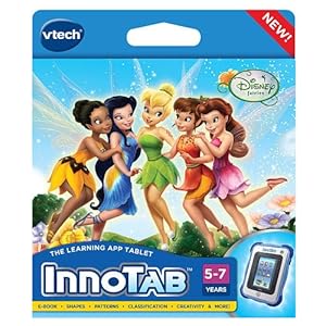 Imagine and learn with the Disney Fairies educational game cartridge for the InnoTab Interactive Learning Tablet from VTech. This activity cartridge includes 3 interactive learning games where players can use the color touch screen or tilt sensor as they develop skills in counting, shapes and letter order. Kids can also read along with an e-book that tells the story of Tinker Bell and the Great Fairy Rescue. While reading, a pop-up dictionary feature gives animated definitions of various vocabulary words found in the e-book. Two creative activities allow kids to play and create with their Fairy friends and creations can be saved on InnoTab's onboard memory or on an SD card (not included). 3 interactive learning games reinforce skills such as counting, shapes and letter order. E-book tells the story of "Tinker Bell and the Great Fairy Rescue" with full color animation, Tinker Bell voice and magical music and sounds. Pop-up dictionary gives animated definitions of vocabulary words in the e-book. 2 creative activities allow kids to play and create with the fairies. Player's creations may be saved to the InnoTab onboard memory, or SD card (sold separately). From the Manufacturer Imagine and learn with the Disney Fairies educational game cartridge for the InnoTab Interactive Learning Tablet from VTech. This activity cartridge includes 3 interactive learning games where players can use the color touch screen or tilt sensor as they develop skills in counting, shapes and letter order. Kids can also read along with an e-book that tells the story of Tinker Bell and the Great Fairy Rescue. While reading, a pop-up dictionary feature gives animated definitions of various vocabulary words found in the e-book. Two creative activities allow kids to play and create with their Fairy friends and creations can be saved on InnoTab's onboard memory or on an SD card (not included). 3 interactive learning games reinforce skills such as counting, shapes and letter order. E-book tells the story of "Tinker Bell and the Great Fairy Rescue" with full color animation, Tinker Bell voice and magical music and sounds. Pop-up dictionary gives animated definitions of vocabulary words in the e-book. 2 creative activities allow kids to play and create with the fairies. Player's creations may be saved to the InnoTab onboard memory, or SD card (sold separately). Product Description Imagine and learn with the The Disney Fairies cartridge for the InnoPad Interactive Learning Tablet from VTech. This activity cartridge includes 3 interactive learning games where players can use the color touch screen or tilt sensor as they develop skills in counting, shapes, and letter order. Kids can also read along with an e-book that tells the story of Tinker Bell and the Great Fairiy Rescue. While reading, a pop-up dictionary feature gives animated definitions of various vocabulary words found in the e-book. Two creative activities allow kids to play and create with their Fairy friends and creations can be saved on InnoPad's onboard memory or on an SD card (not included).