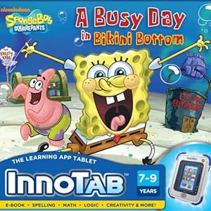 Learn and play with SpongeBob and his friends in the new SpongeBob SquarePants educational game cartridge for the InnoTab Interactive Learning Tablet by VTech. Kids can play three interactive learning games that teach spelling, math and logic skills using the color touch screen or tilt sensor. Read along with a day in the life of SpongeBob as he tries to be the best fry cook in the history of Krusty Krab. The story dictionary helps kids build vocabulary as it calls out definitions of words found in the e-book. Two creative activities allow kids to play and create with SpongeBob and Patrick and creations can be saved on InnoTab's onboard memory or on an SD card (not included). Use the touch screen or the tilt-sensor to play three educational games. E-book tells the story of SpongeBob working at the Krusty Krab. Explore the pages for fun sounds, voices and animations. Pop-up dictionary gives animated definitions of vocabulary words in the e-book. 2 Creative Activities Direct a music video with SpongeBob and help SpongeBob build a fantastic new krabby patty. Player's creations may be saved to the InnoTab onboard memory, or SD card (sold separately). Learn and play with SpongeBob and his friends in the new SpongeBob SquarePants educational game cartridge for the InnoTab Interactive Learning Tablet by VTech. Kids can play three interactive learning games that teach spelling, math and logic skills using the color touch screen or tilt sensor. Read along with a day in the life of SpongeBob as he tries to be the best fry cook in the history of Krusty Krab. The story dictionary helps kids build vocabulary as it calls out definitions of words found in the e-book. Two creative activities allow kids to play and create with SpongeBob and Patrick and creations can be saved on InnoTab's onboard memory or on an SD card (not included). Use the touch screen or the tilt-sensor to play three educational games. E-book tells the story of SpongeBob working at the Krusty Krab. Explore the pages for fun sounds, voices and animations. Pop-up dictionary gives animated definitions of vocabulary words in the e-book. 2 Creative Activities Direct a music video with SpongeBob and help SpongeBob build a fantastic new krabby patty. Creations may be saved to the InnoTab onboard memory, or SD card (sold separately). Creations may be saved to the InnoPad onboard memory, or SD card (sold separately)